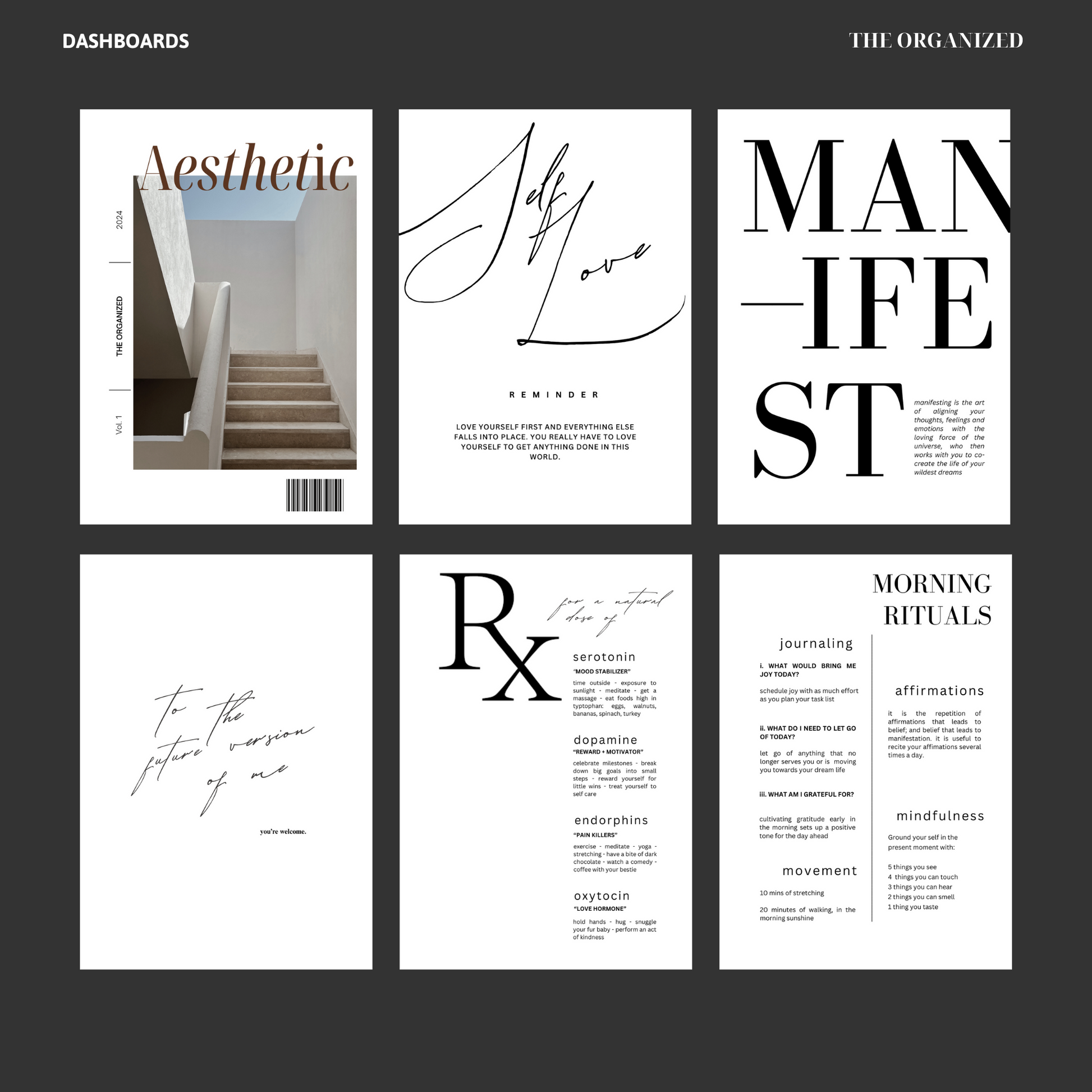 This digital download includes 6 printable dashboards with 5 sizes included: A4, A5, half letter, personal + CP petite.