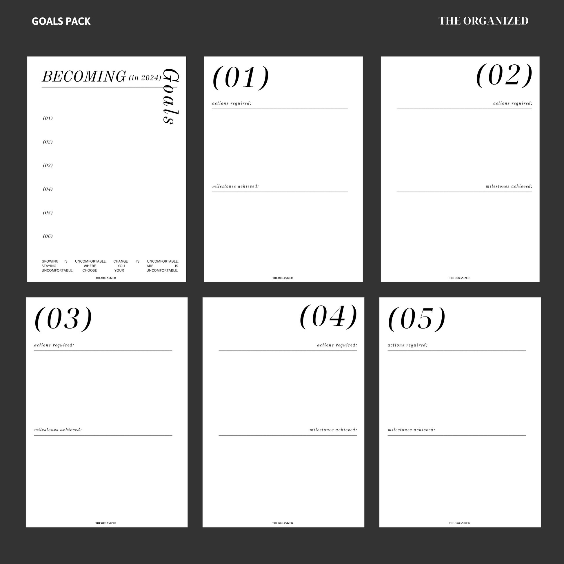 Vividly describing your goals in written form is strongly associated with goal success. This insert set is designed to capture your goal, action plan and keep track of milestones on the path to achievement. The packages includes the following: